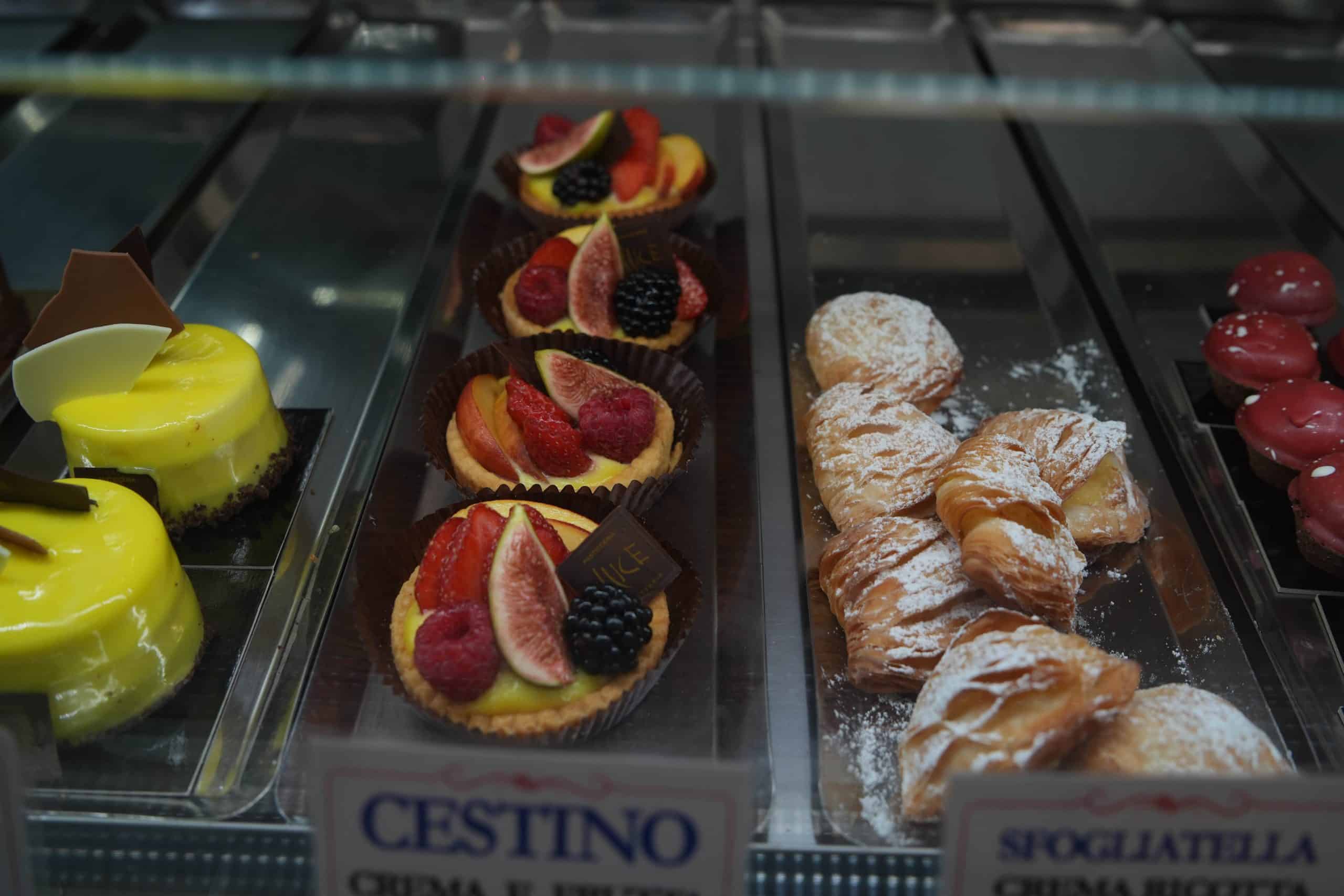 La pasticceria offre un'ampia selezione, dalle torte classiche alle creazioni moderne, dalle mignon alle monoporzioni, oltre a dolci appena sfornati ideali per la colazione.